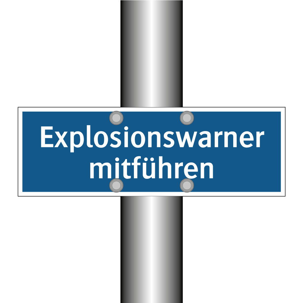 Gebotsschild mit dem Text Explosionswarner mitführen