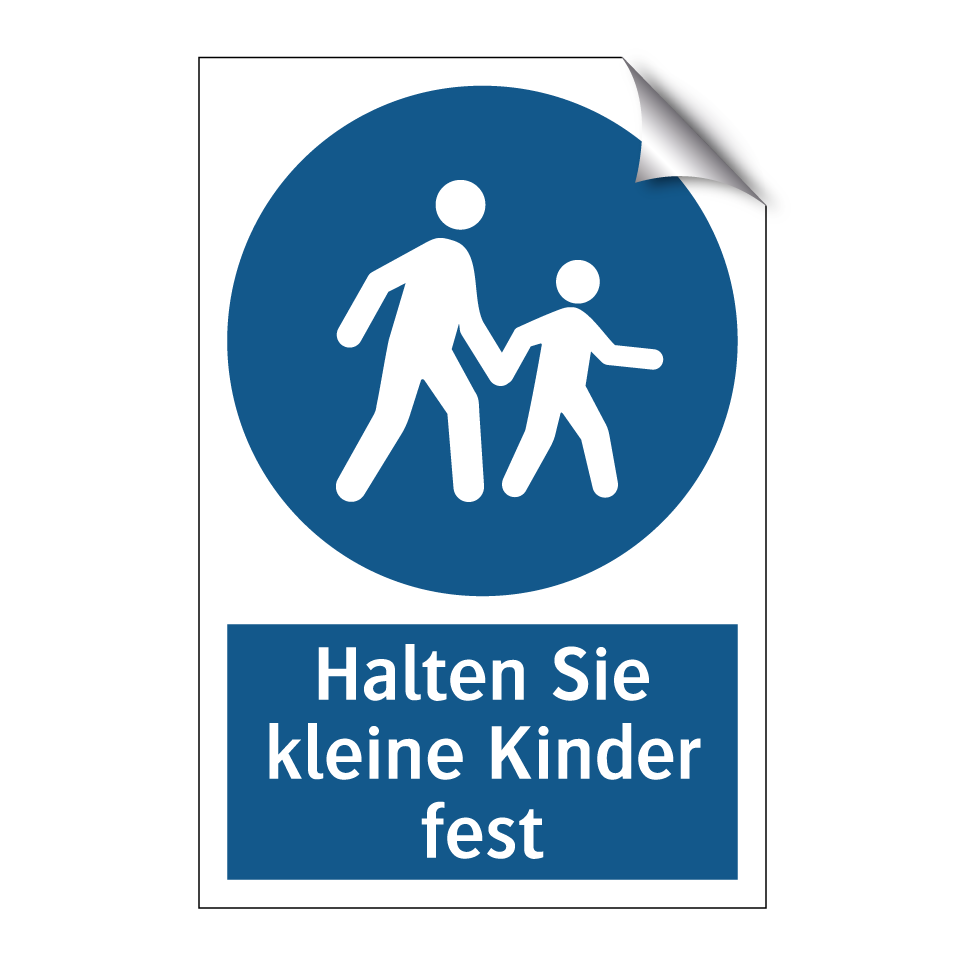 Gebotsschild mit dem Text Halten Sie kleine Kinder fest