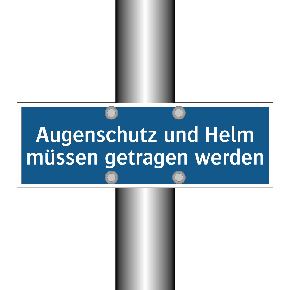 Gebotsschild mit dem Text Augenschutz und Helm müssen getragen werden