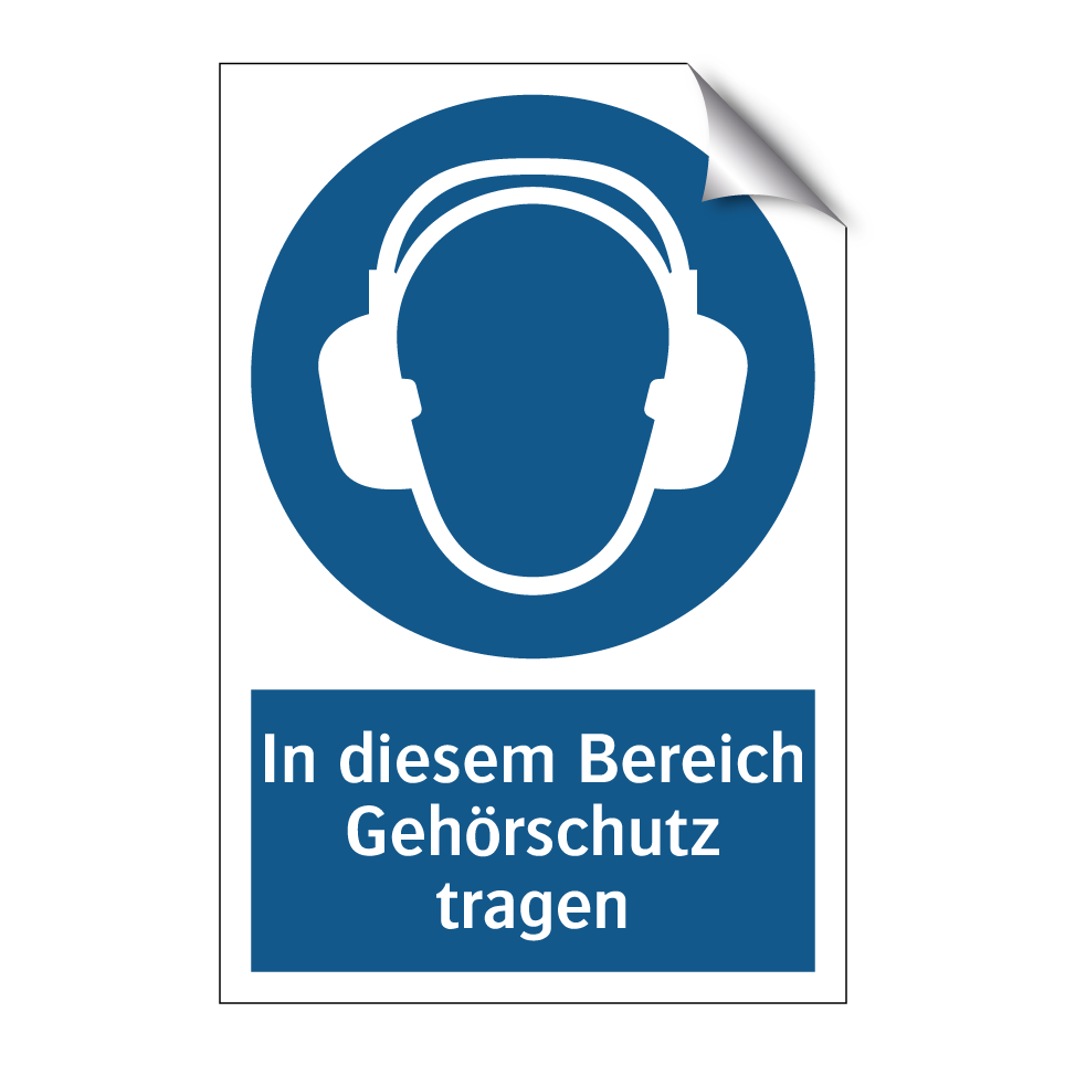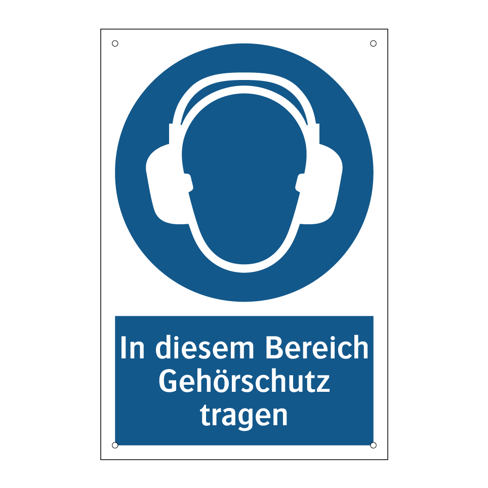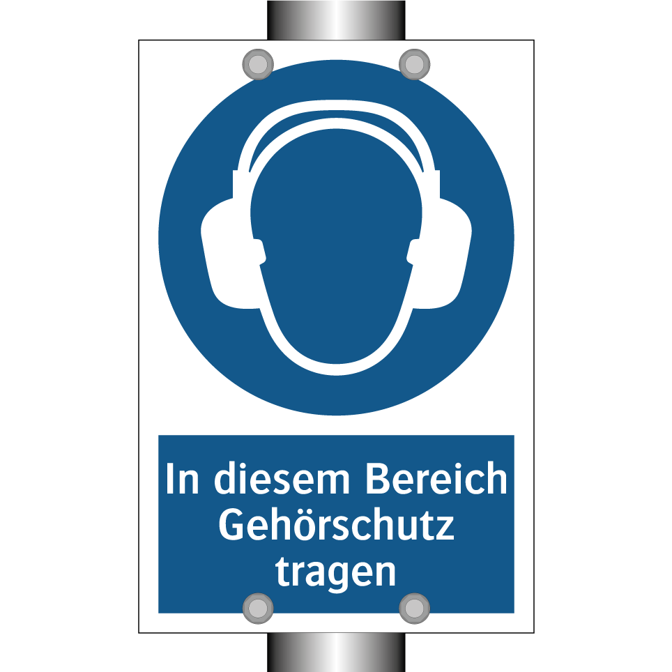 Gebotsschild mit dem Text In diesem Bereich Gehörschutz tragen