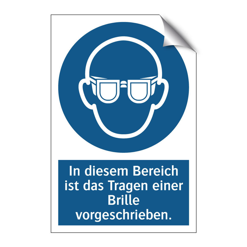 Diese Gebotsschild mit blauer Hintergrundfarbe und weißer Schrift ist ideal für Bereiche, in denen das Tragen einer Brille zwingend erforderlich ist. Ob in Laboren, Werkstätten oder Produktionsstätten – diese Sicherheitsmaßnahme sorgt für den Schutz der Augen und minimiert das Risiko von Verletzungen. Die klare Symbolik und der prägnante Text machen es einfach, die Anweisung zu verstehen und zu befolgen. Platzieren Sie dieses Schild an gut sichtbaren Stellen, um sicherzustellen, dass alle Mitarbeiter und Besucher die Sicherheitsvorschriften einhalten. Diese Gebotsschild ist ein unverzichtbares Element für jede Umgebung, in der Augenschutz oberste Priorität hat.