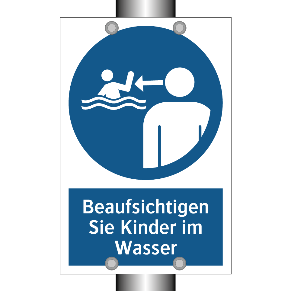Gebotsschild mit dem Text Beaufsichtigen Sie Kinder im Wasser