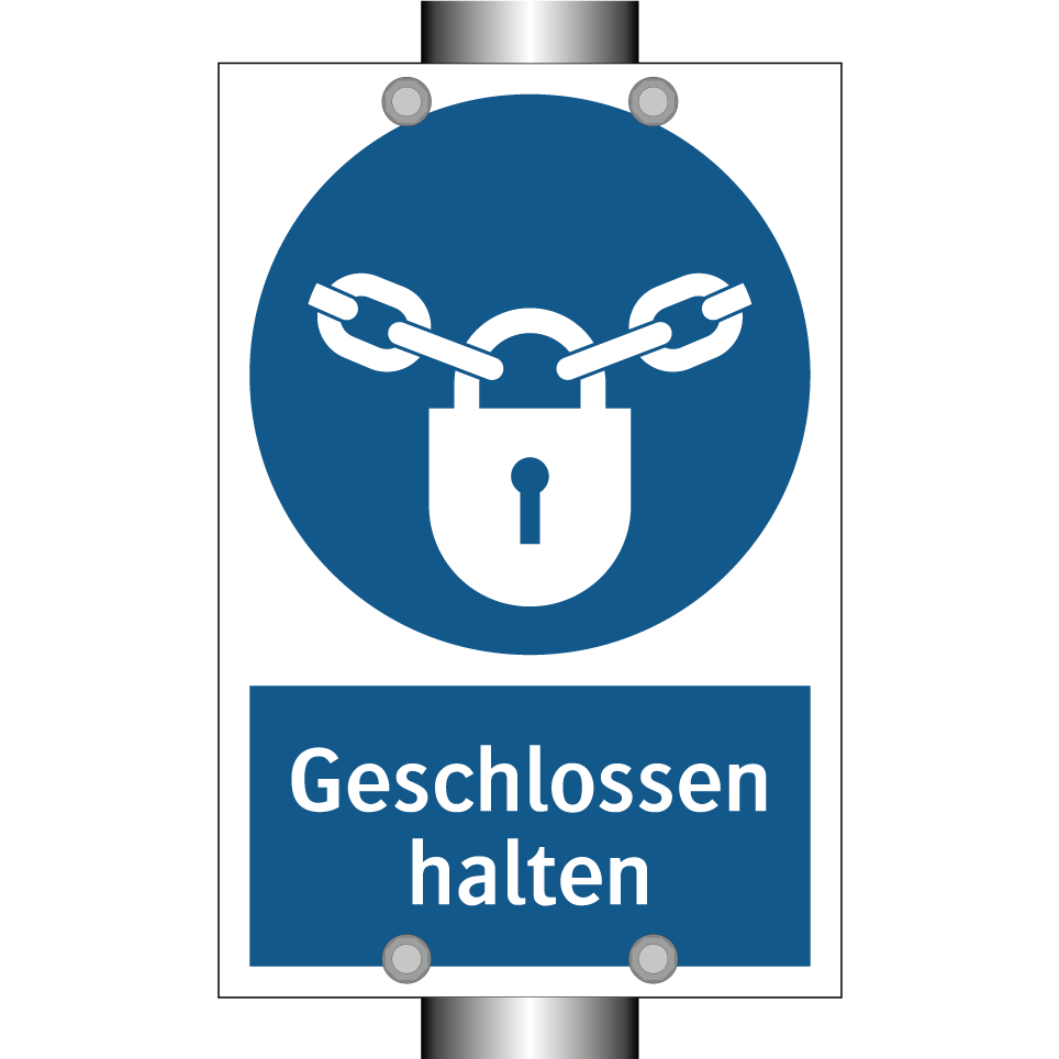 Diese Gebotsschild mit blauer Hintergrundfarbe und weißer Schrift ist ideal für den Einsatz in Bereichen, in denen Sicherheit und Ordnung oberste Priorität haben. Sie dient dazu, Türen oder Zugänge geschlossen zu halten, um unbefugten Zutritt zu verhindern und die Sicherheit zu gewährleisten. Diese Beschilderung ist besonders nützlich in industriellen Umgebungen, Lagerhäusern oder Bürogebäuden, wo der Zugang kontrolliert werden muss. Durch die klare Symbolik und den prägnanten Text wird die Botschaft unmissverständlich vermittelt. Platzieren Sie diese Gebotsschild an strategischen Punkten, um sicherzustellen, dass die Anweisung befolgt wird und ein reibungsloser Betriebsablauf gewährleistet ist.