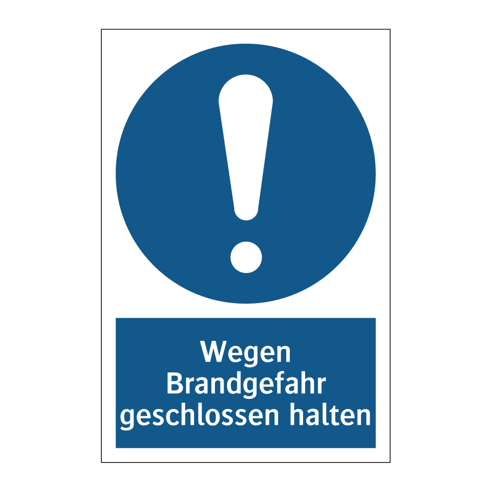 Gebotsschild mit dem Text Wegen Brandgefahr geschlossen halten