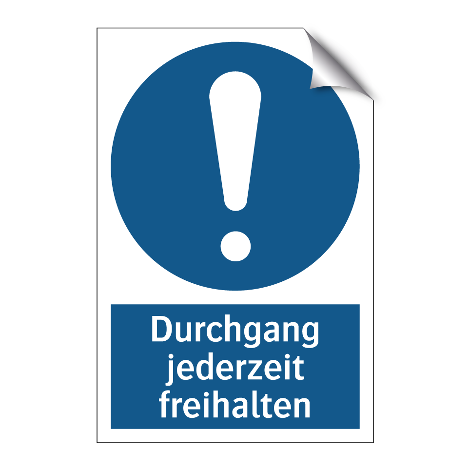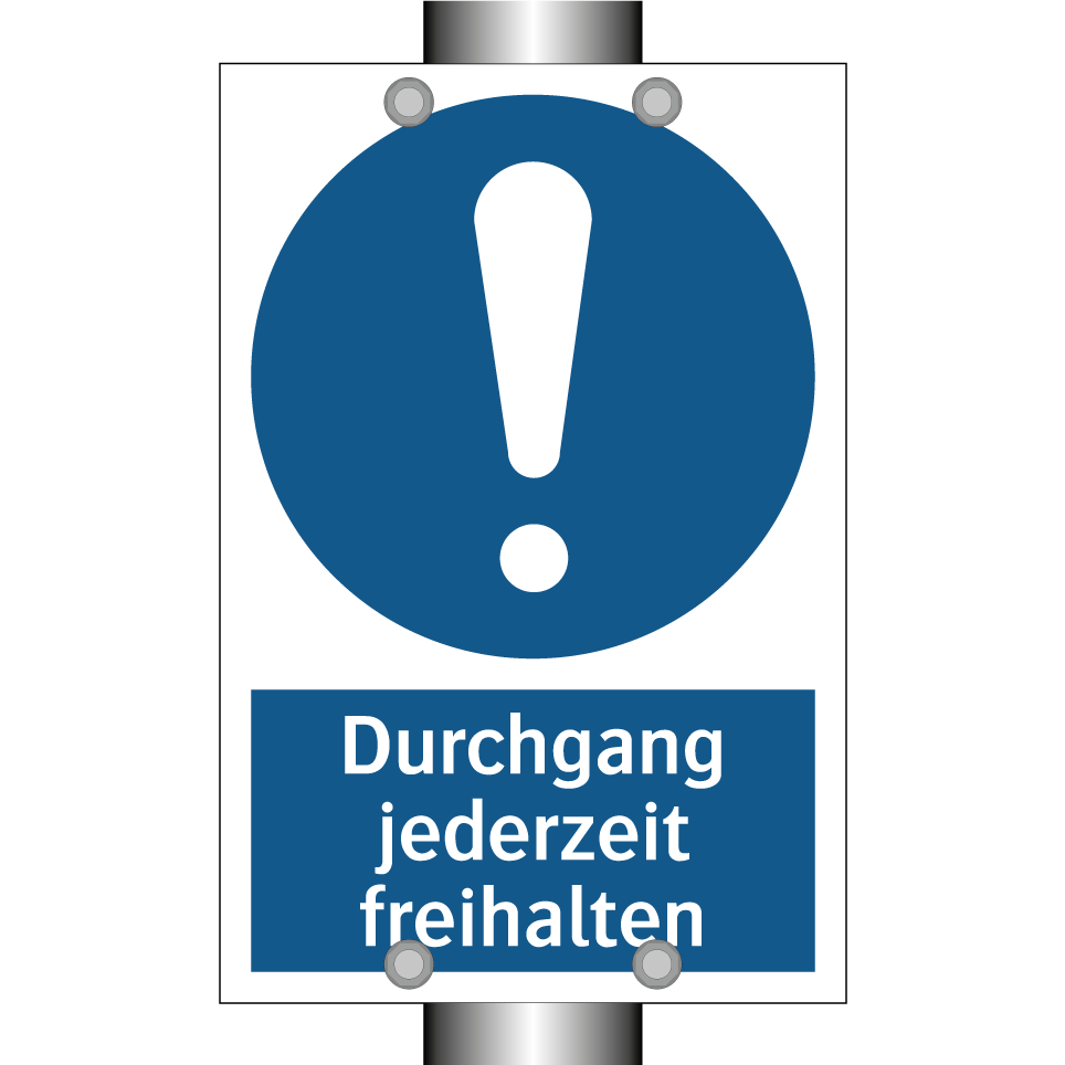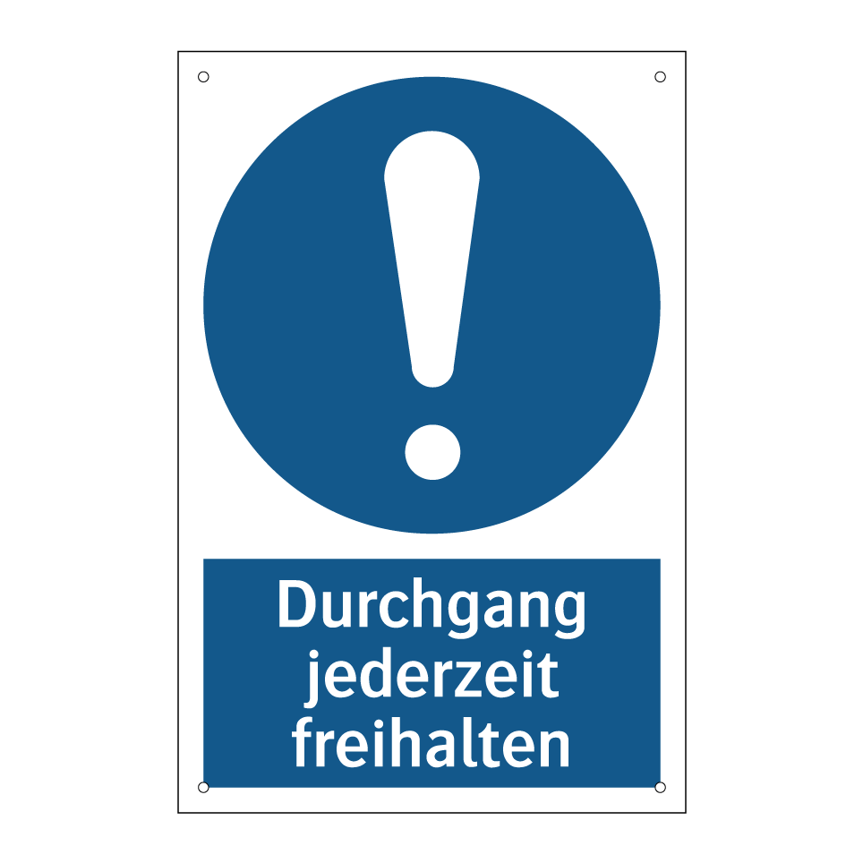 Gebotsschild mit dem Text Durchgang jederzeit freihalten