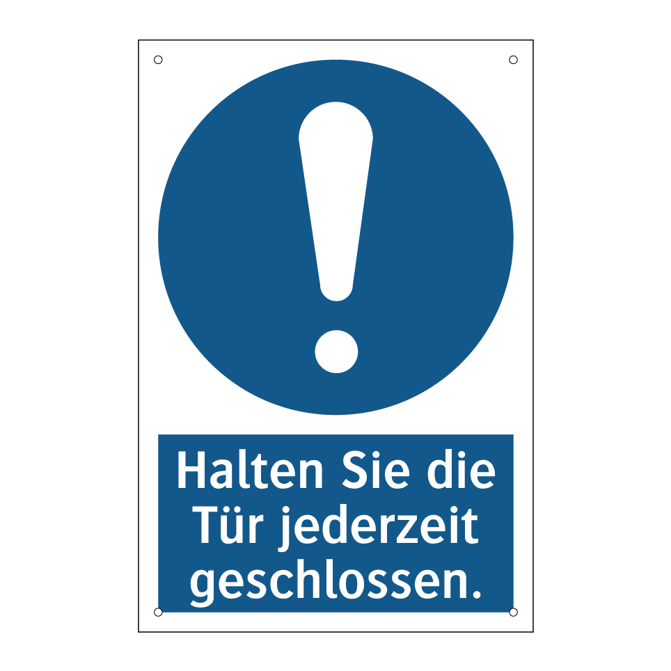 Gebotsschild mit dem Text Halten Sie die Tür jederzeit geschlossen.