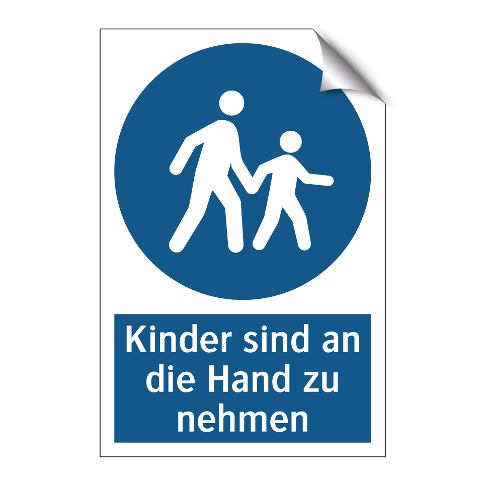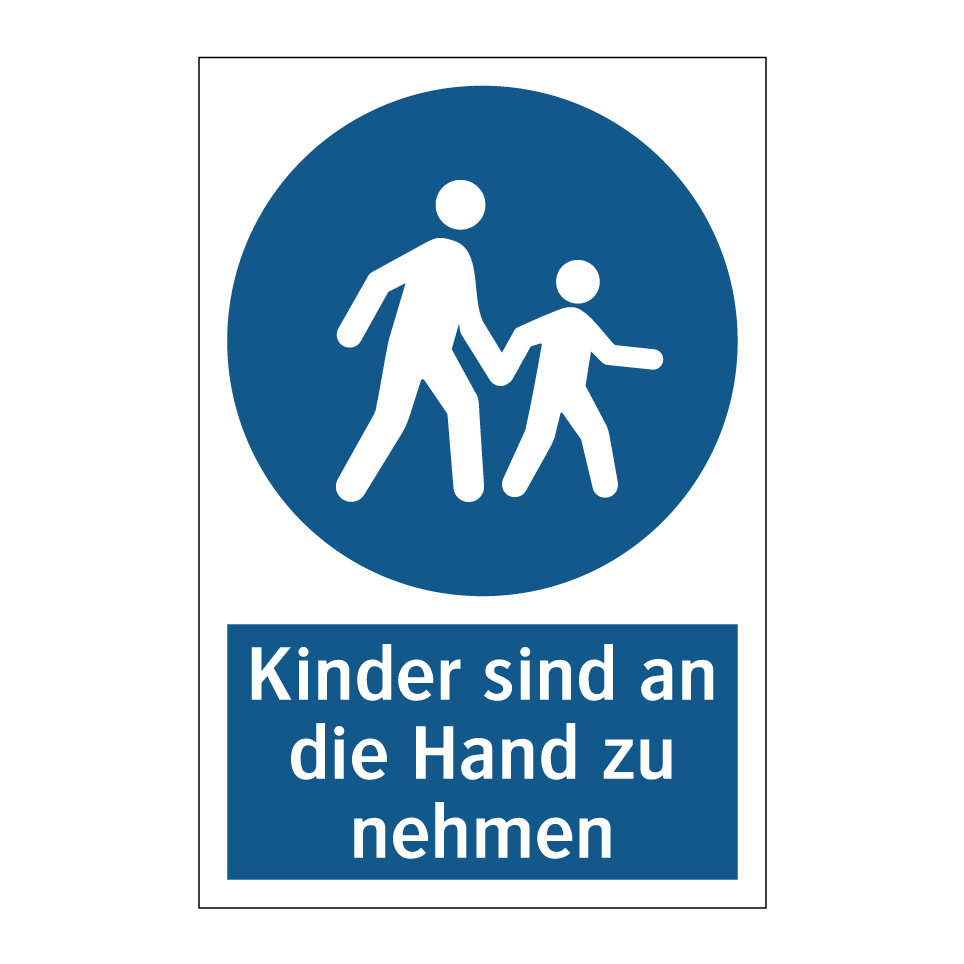 Gebotsschild mit dem Text Kinder sind an die Hand zu nehmen