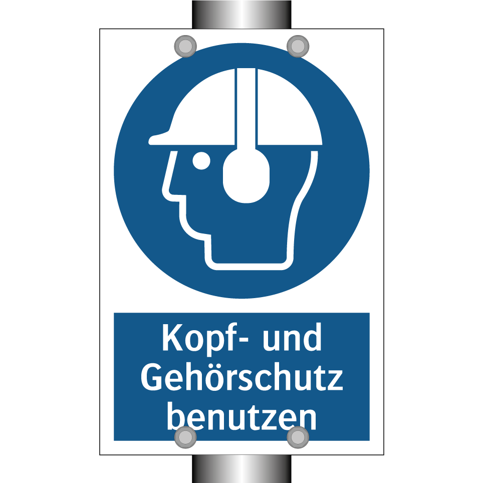 Gebotsschild mit dem Text Kopf- und Gehörschutz benutzen