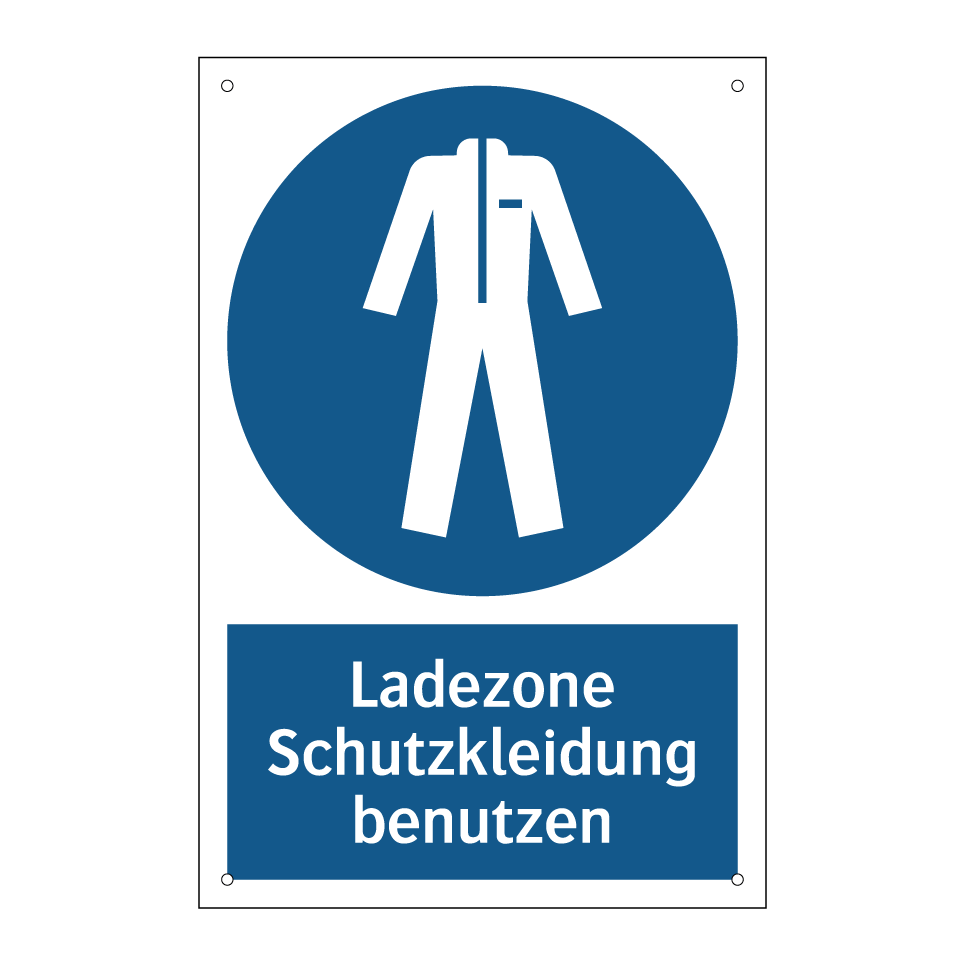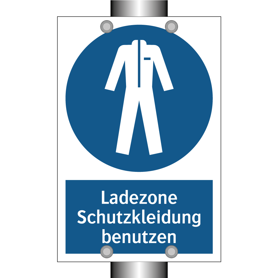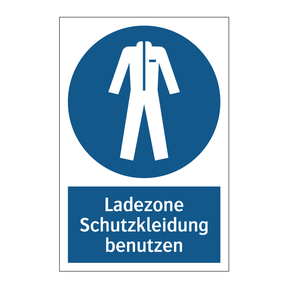 Gebotsschild mit dem Text Ladezone Schutzkleidung benutzen