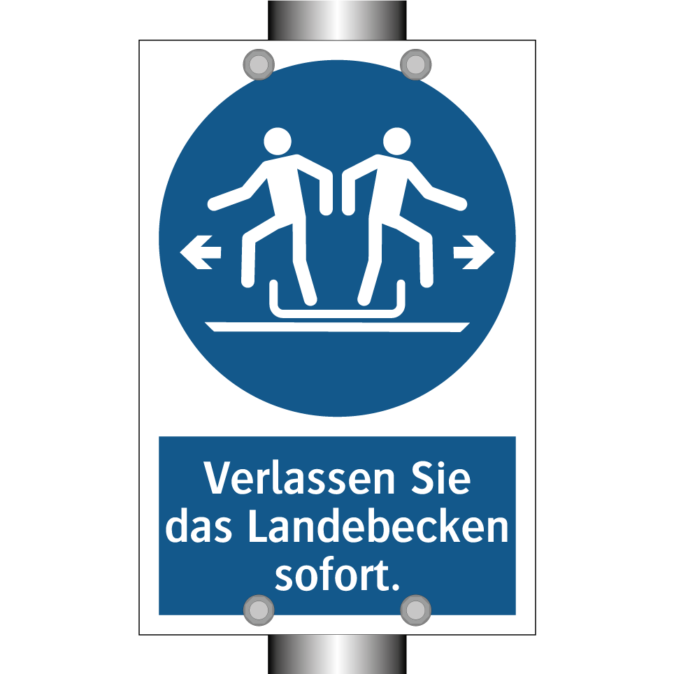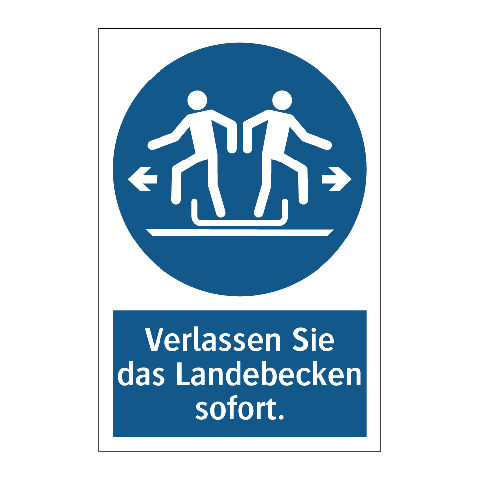 Gebotsschild mit dem Text Verlassen Sie das Landebecken sofort.