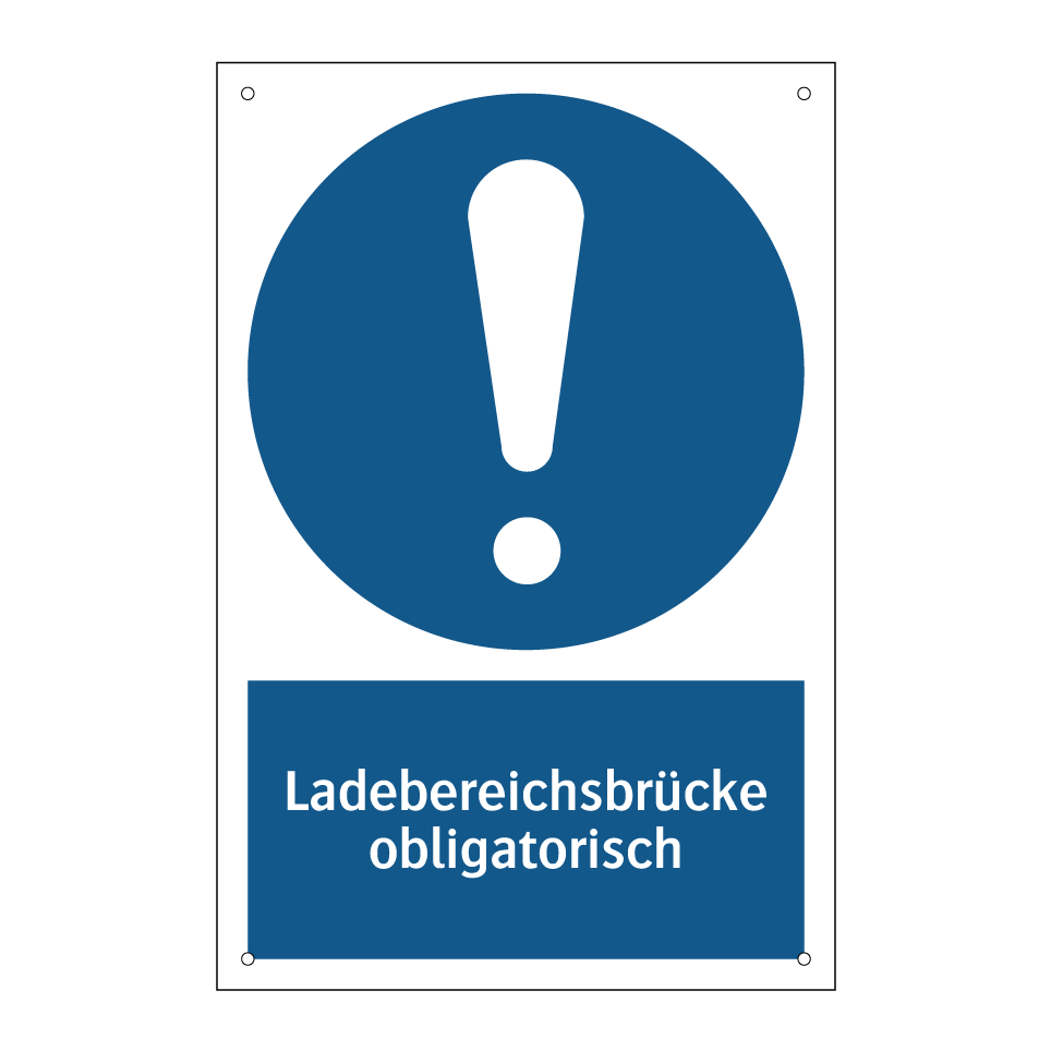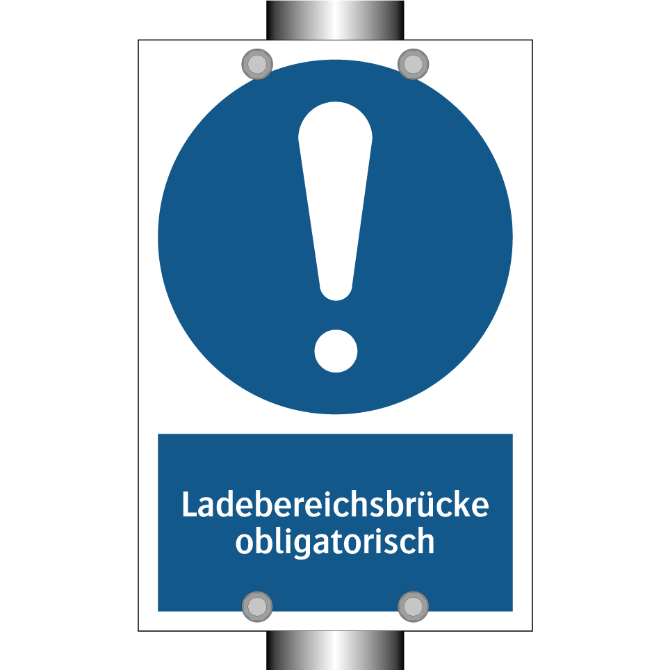 Gebotsschild mit dem Text Ladebereichsbrücke obligatorisch