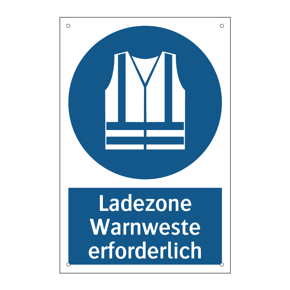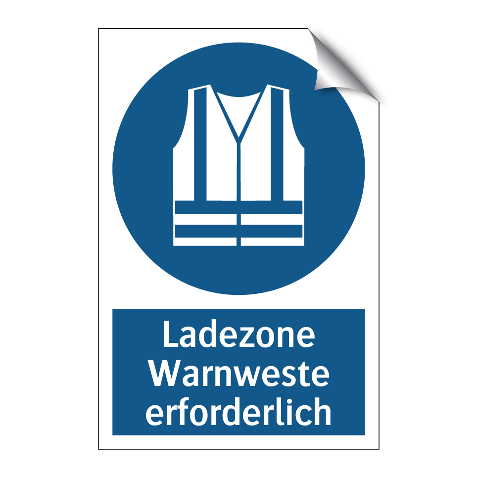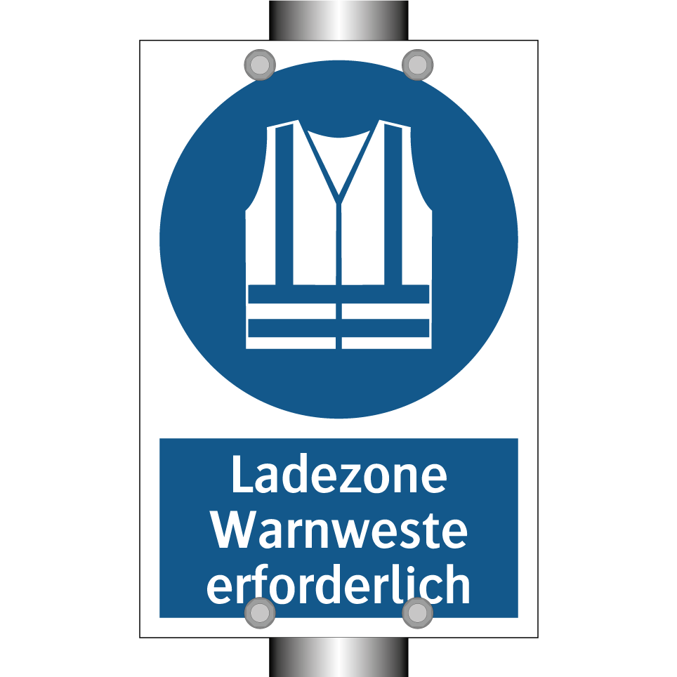 Gebotsschild mit dem Text Ladezone Warnweste erforderlich