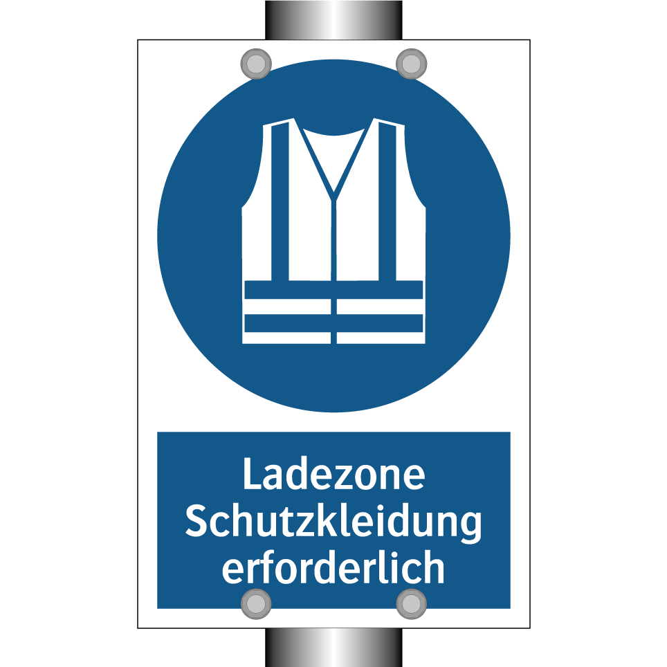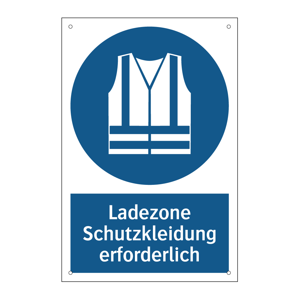 Gebotsschild mit dem Text Ladezone Schutzkleidung erforderlich
