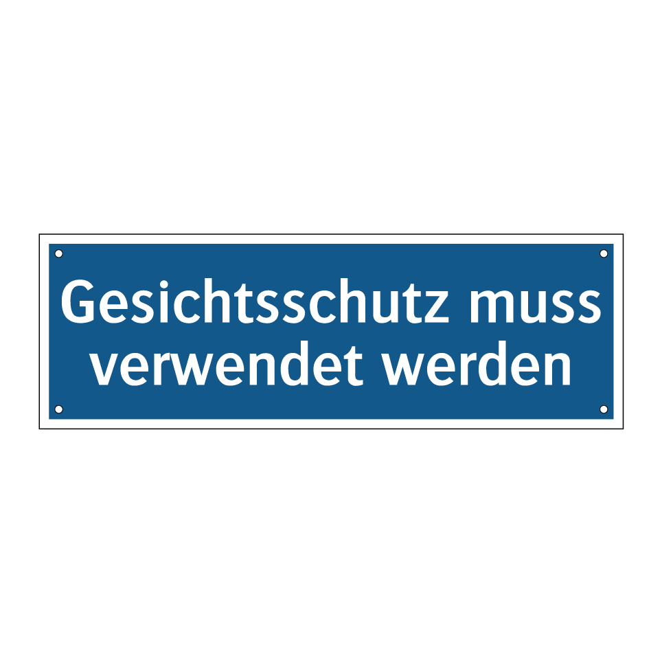 Diese Gebotsschild ist ein unverzichtbares Element in jeder Arbeitsumgebung, in der der Schutz des Gesichts erforderlich ist. Es dient dazu, die Sicherheit der Mitarbeiter zu gewährleisten, indem es daran erinnert, dass Gesichtsschutz getragen werden muss. Diese Sicherheitsmaßnahme ist besonders wichtig in Bereichen wie Fabriken, Laboren oder Baustellen, wo das Risiko von Verletzungen durch fliegende Partikel oder Chemikalien besteht. Die klare blaue Hintergrundfarbe und der weiße Text machen die Anweisung leicht erkennbar und verständlich. Platzieren Sie dieses Schild an Eingängen zu gefährdeten Bereichen oder in der Nähe von Arbeitsstationen, um sicherzustellen, dass alle Mitarbeiter und Besucher die Sicherheitsvorschriften einhalten.