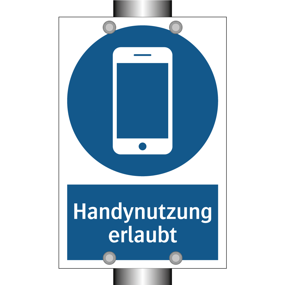 Gebotsschild mit dem Text Handynutzung erlaubt