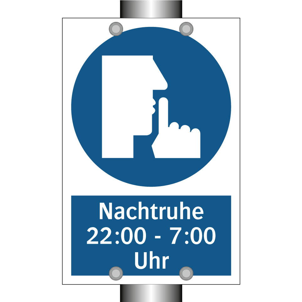 Gebotsschild mit dem Text Nachtruhe 22:00 - 7:00 Uhr