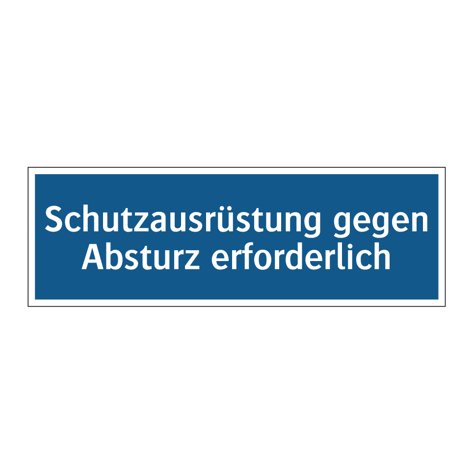 Diese Gebotsschild ist ein unverzichtbares Element für die Sicherheit am Arbeitsplatz. Sie weist darauf hin, dass eine Absturzsicherung erforderlich ist, um Unfälle zu vermeiden. Ideal für Baustellen, Lagerhäuser oder andere Arbeitsumgebungen, in denen Höhenarbeit stattfindet. Die klare blaue Hintergrundfarbe mit weißem Text sorgt dafür, dass die Botschaft sofort ins Auge fällt und leicht verständlich ist. Platzieren Sie diese Gebotsschild an Eingängen zu gefährlichen Bereichen, in der Nähe von Gerüsten oder an anderen strategischen Punkten, um sicherzustellen, dass alle Mitarbeiter und Besucher auf die Notwendigkeit von Schutzmaßnahmen aufmerksam gemacht werden. Fördern Sie die Sicherheit und minimieren Sie Risiken durch den Einsatz dieser effektiven Sicherheitsmaßnahme.