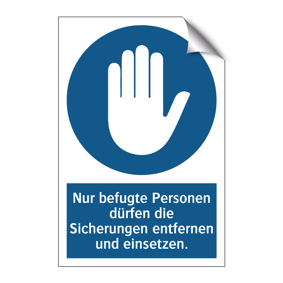 Gebotsschild mit dem Text Nur befugte Personen dürfen die Sicherungen entfernen und einsetzen.