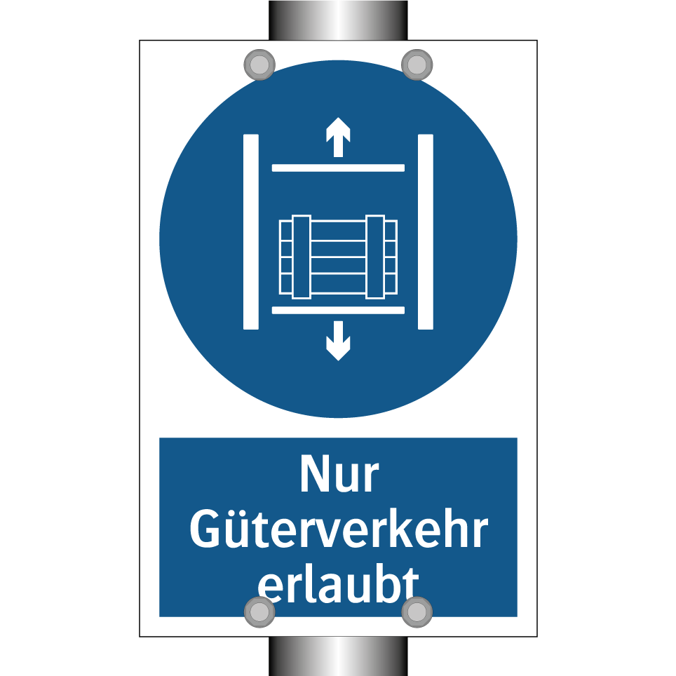 Gebotsschild mit dem Text Nur Güterverkehr erlaubt