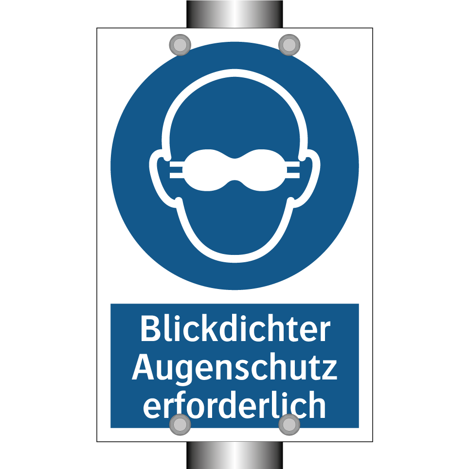 Gebotsschild mit dem Text Blickdichter Augenschutz erforderlich