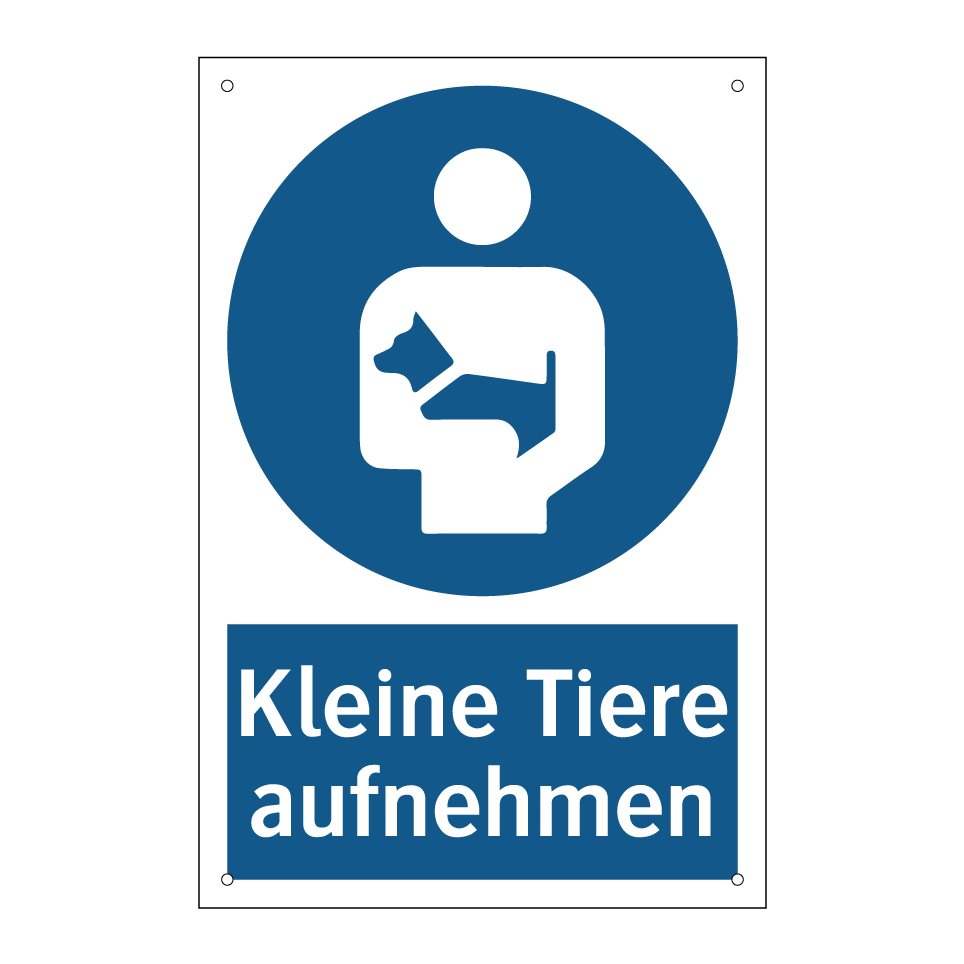 Gebotsschild mit dem Text Kleine Tiere aufnehmen