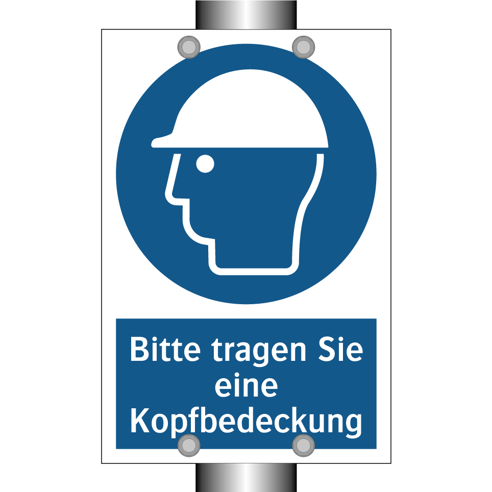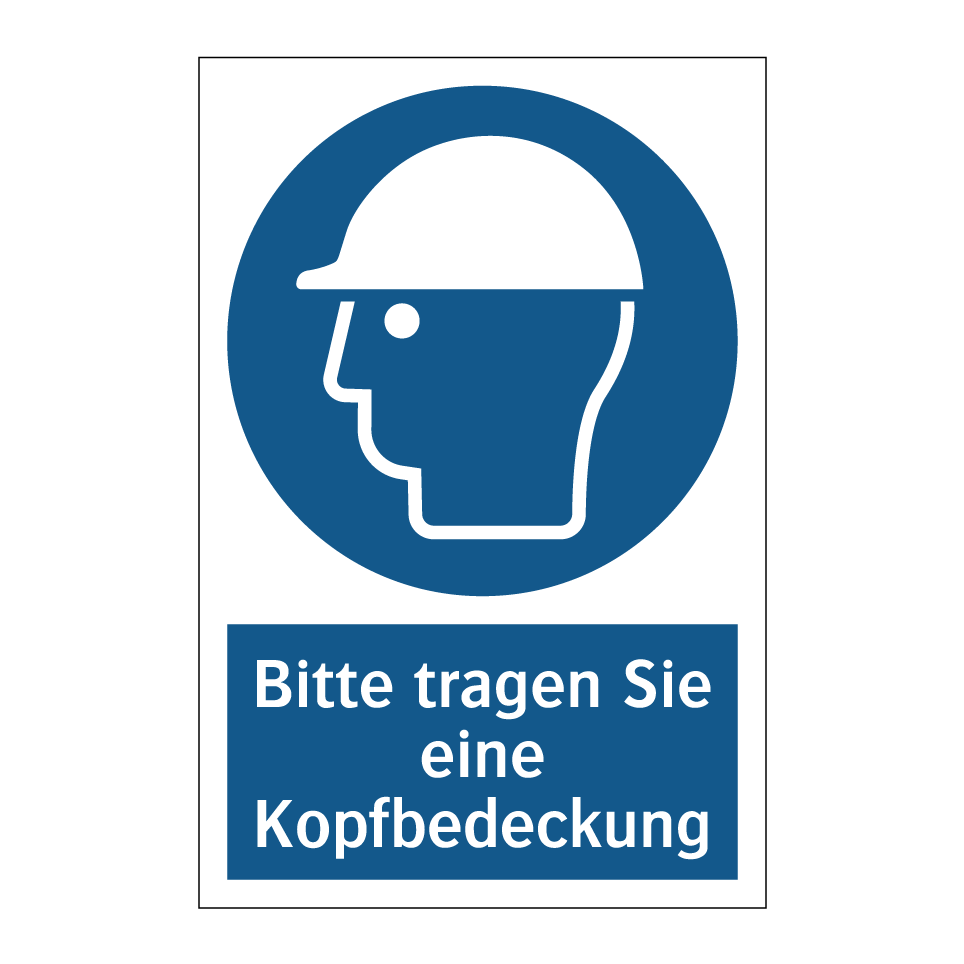 Gebotsschild mit dem Text Bitte tragen Sie eine Kopfbedeckung