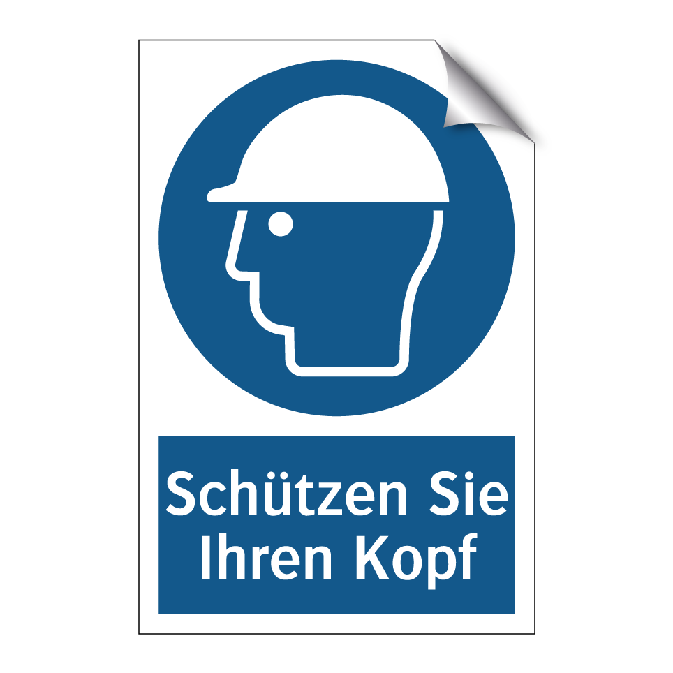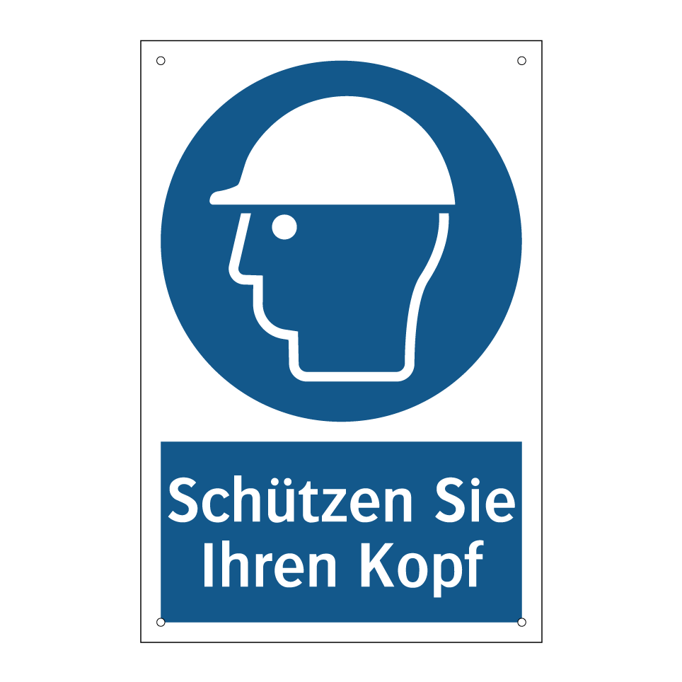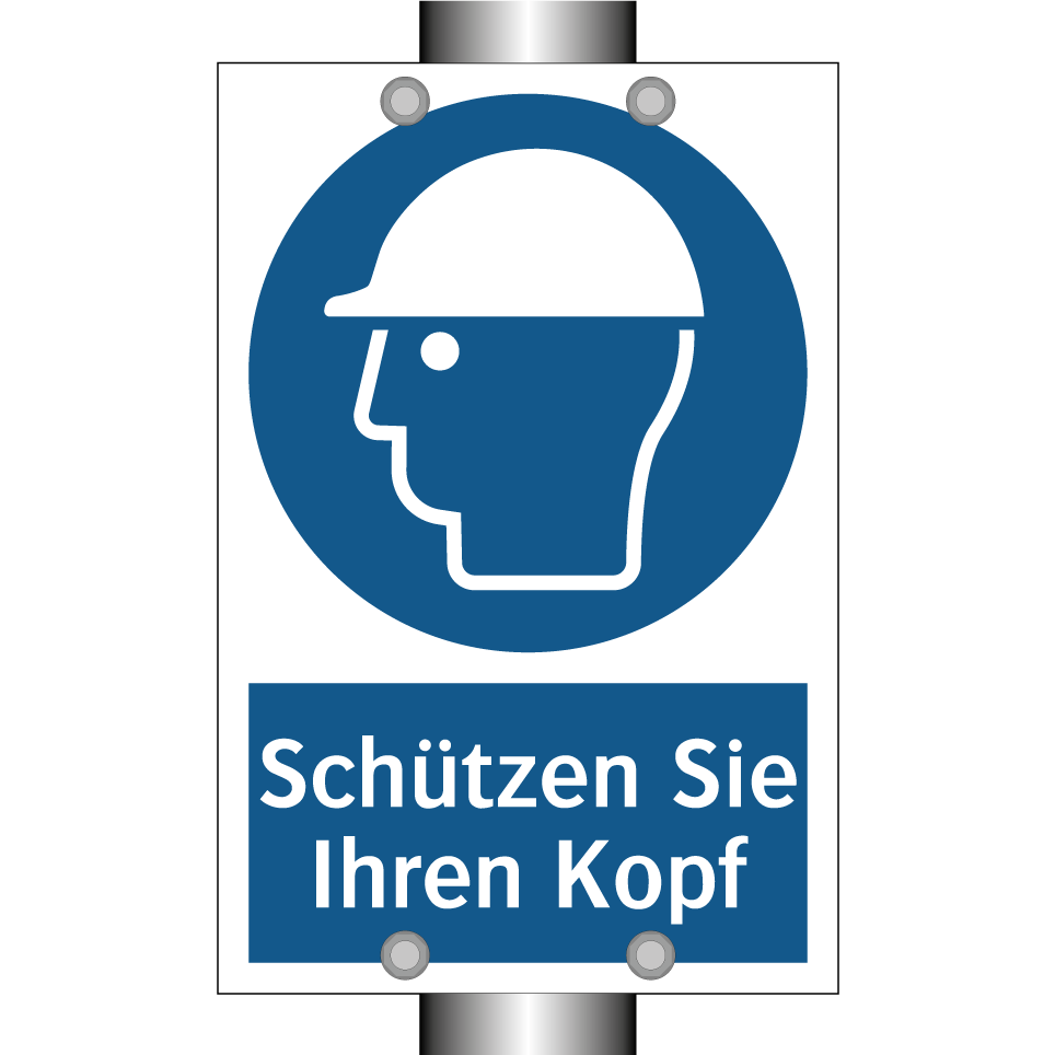 Gebotsschild mit dem Text Schützen Sie Ihren Kopf