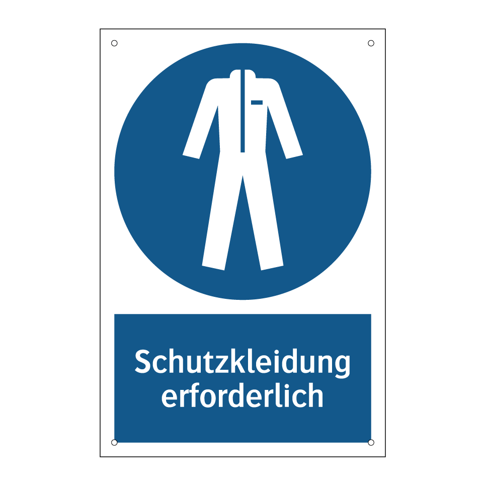 Gebotsschild mit dem Text Schutzkleidung erforderlich