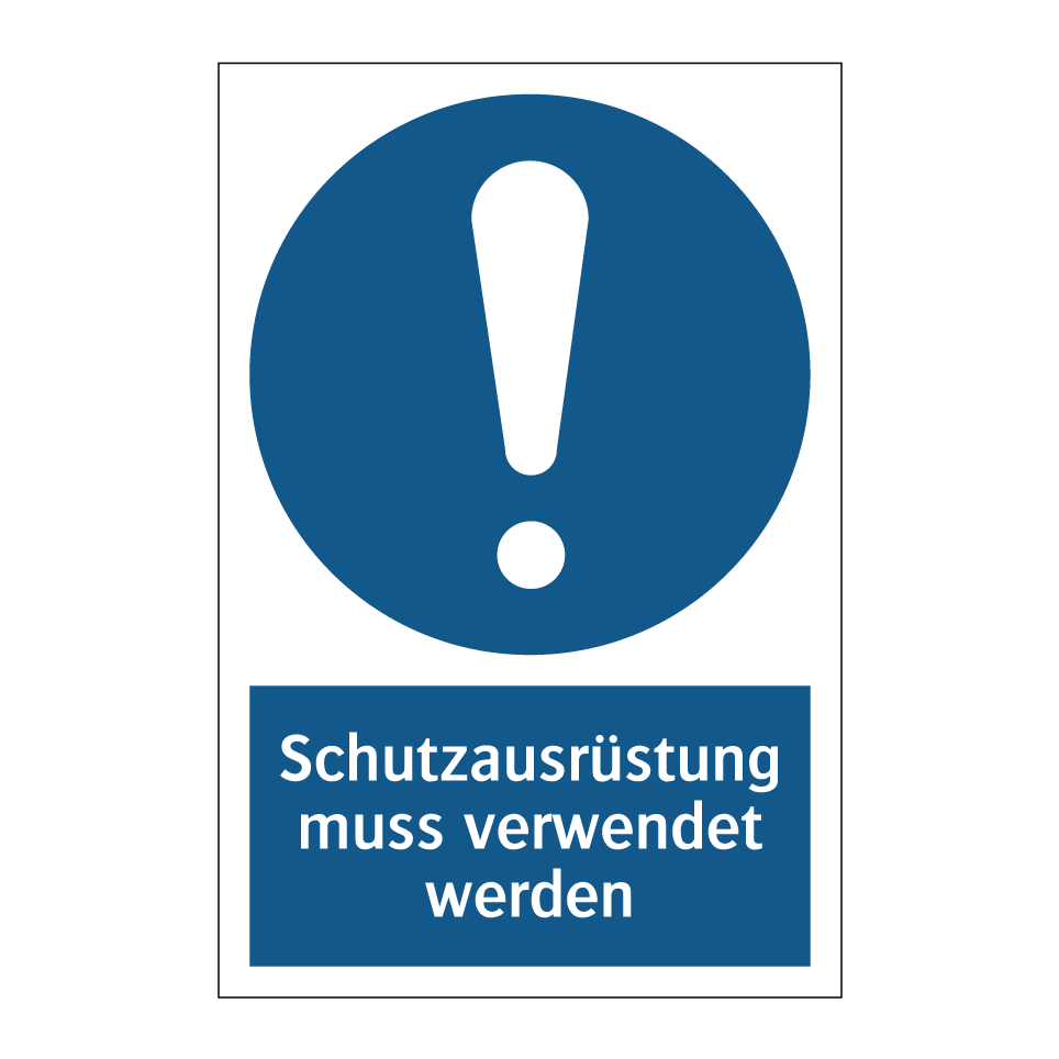 Diese Gebotsschild ist ein unverzichtbares Element für die Sicherheit am Arbeitsplatz. Mit ihrer klaren blauen Hintergrundfarbe und der auffälligen weißen Schrift signalisiert sie unmissverständlich die Notwendigkeit, persönliche Schutzausrüstung zu tragen. Ideal für den Einsatz in industriellen Umgebungen, Baustellen oder Laboratorien, erinnert sie Mitarbeiter und Besucher daran, sich selbst zu schützen. Diese Sicherheitsmaßnahme kann an Eingängen, in Produktionsbereichen oder in der Nähe von Maschinen angebracht werden, um das Risiko von Unfällen zu minimieren. Durch die strategische Platzierung dieser Gebotsschild wird die Einhaltung von Sicherheitsvorschriften gefördert und ein sichereres Arbeitsumfeld geschaffen.