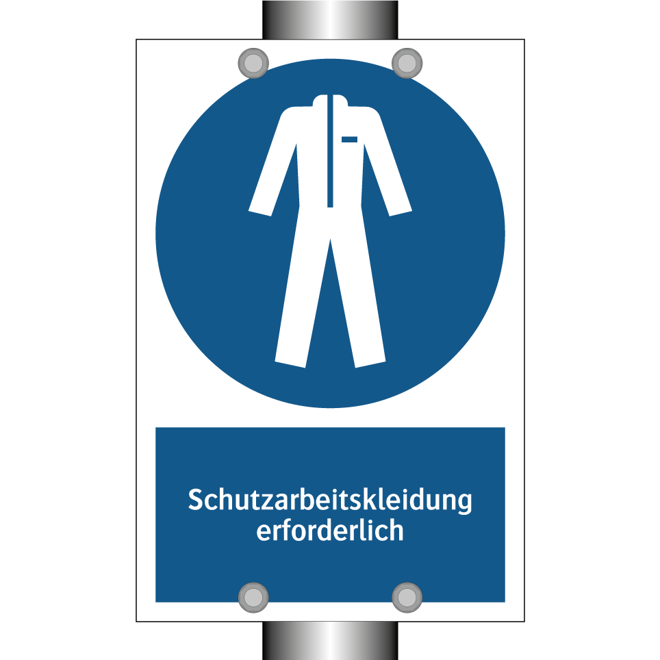 Gebotsschild mit dem Text Schutzarbeitskleidung erforderlich