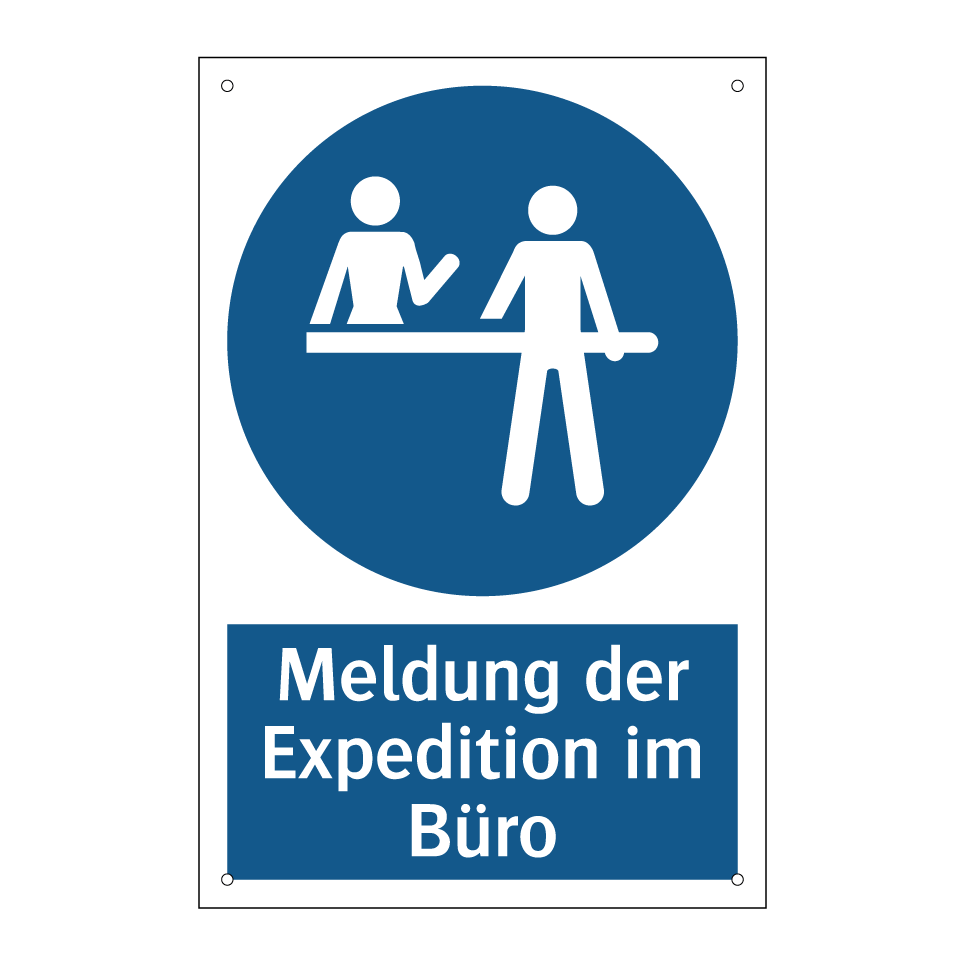 Gebotsschild mit dem Text Meldung der Expedition im Büro