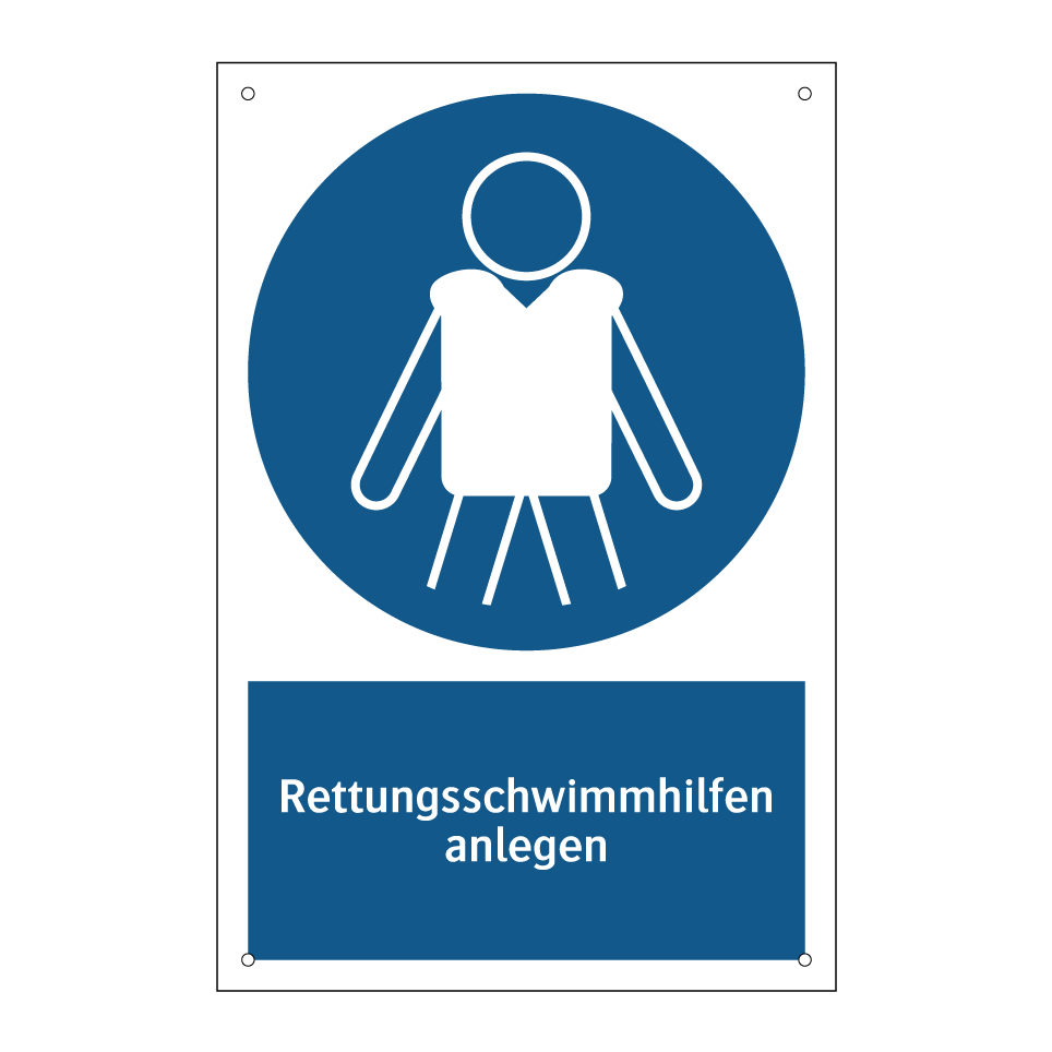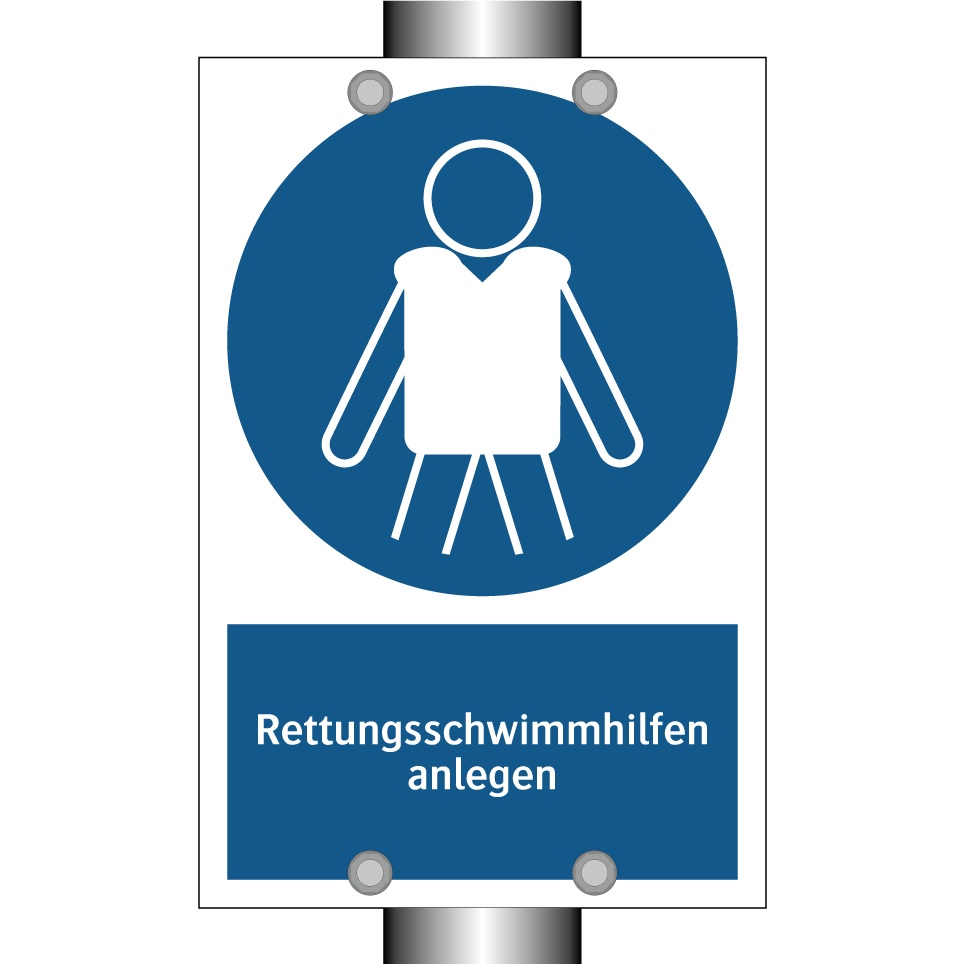 Gebotsschild mit dem Text Rettungsschwimmhilfen anlegen