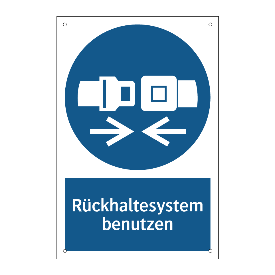 Gebotsschild mit dem Text Rückhaltesystem benutzen