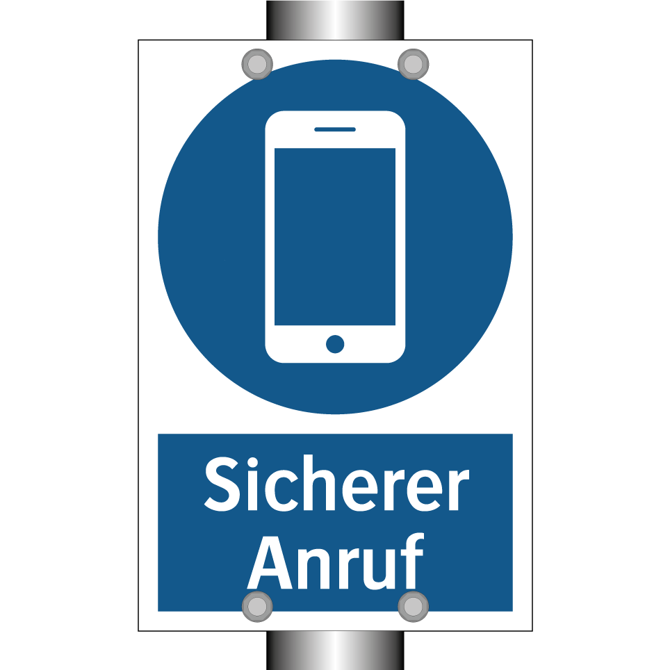 Gebotsschild mit dem Text Sicherer Anruf