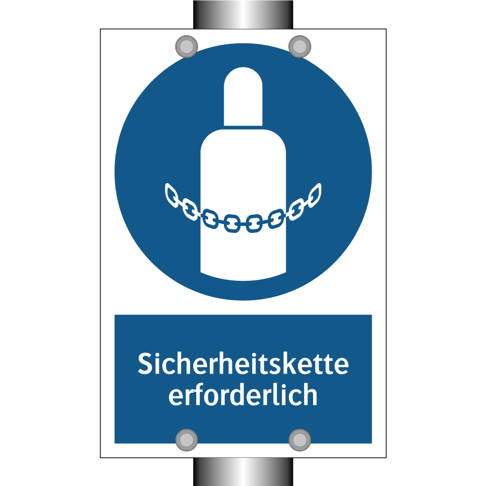 Gebotsschild mit dem Text Sicherheitskette erforderlich