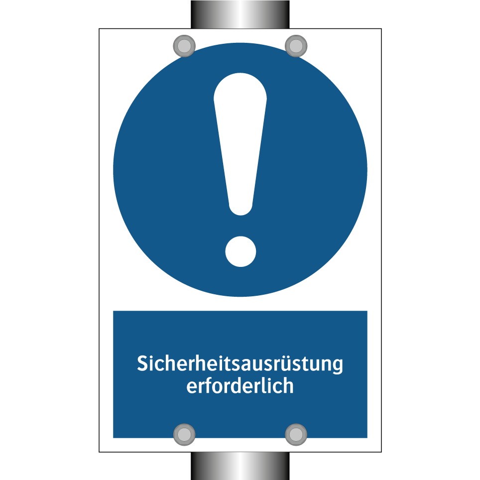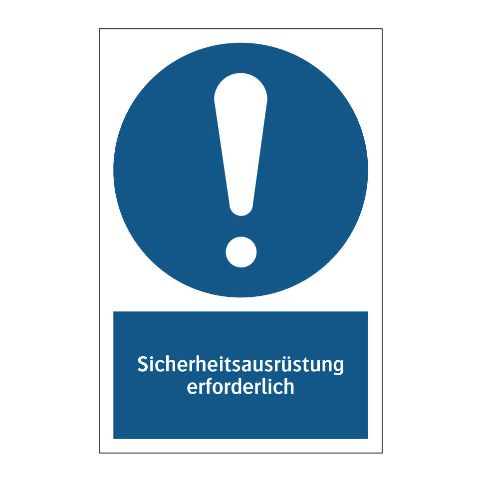 Gebotsschild mit dem Text Sicherheitsausrüstung erforderlich