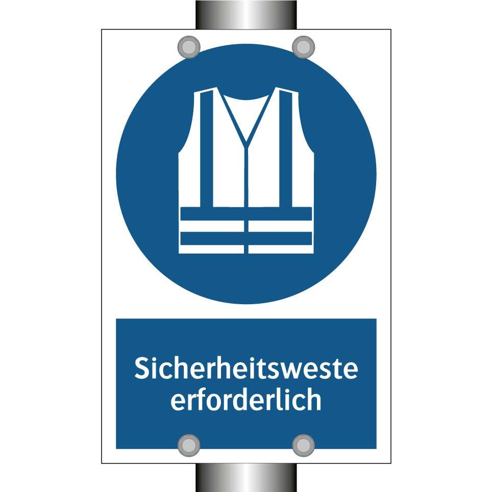 Gebotsschild mit dem Text Sicherheitsweste erforderlich
