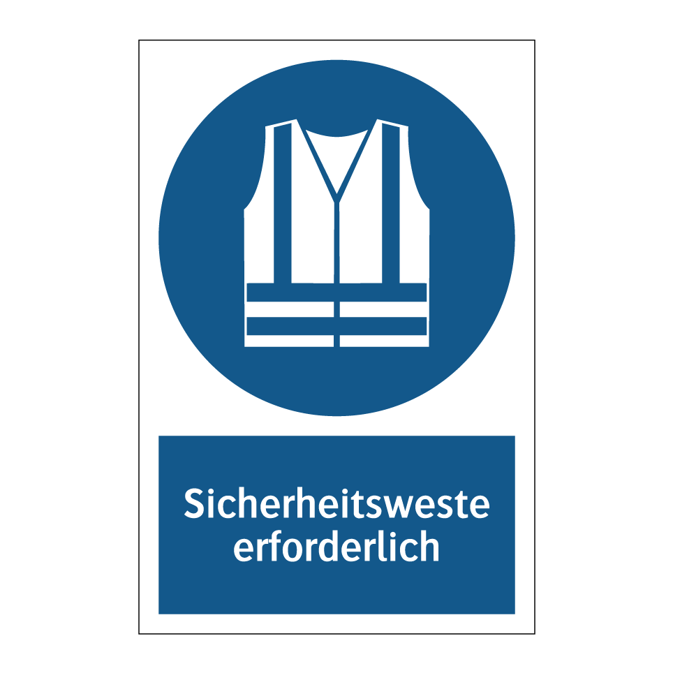 Diese Gebotsschild mit blauer Hintergrundfarbe und weißer Schrift ist ein unverzichtbares Element für die Sicherheit am Arbeitsplatz. Sie signalisiert klar und deutlich, dass das Tragen einer Sicherheitsweste in bestimmten Bereichen erforderlich ist. Ideal für Baustellen, Lagerhallen oder industrielle Umgebungen, wo erhöhte Sicherheitsmaßnahmen notwendig sind. Diese Gebotsschilder können an Eingängen, in der Nähe von Gefahrenzonen oder an anderen strategischen Punkten angebracht werden, um sicherzustellen, dass alle Mitarbeiter und Besucher die Sicherheitsvorschriften einhalten. Durch die auffällige Gestaltung wird die Botschaft unmissverständlich kommuniziert und trägt zur Unfallverhütung bei.