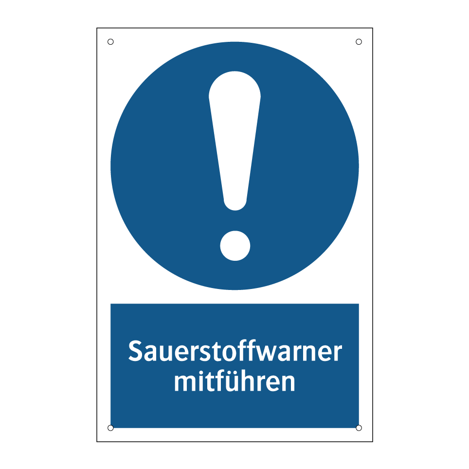 Gebotsschild mit dem Text Sauerstoffwarner mitführen