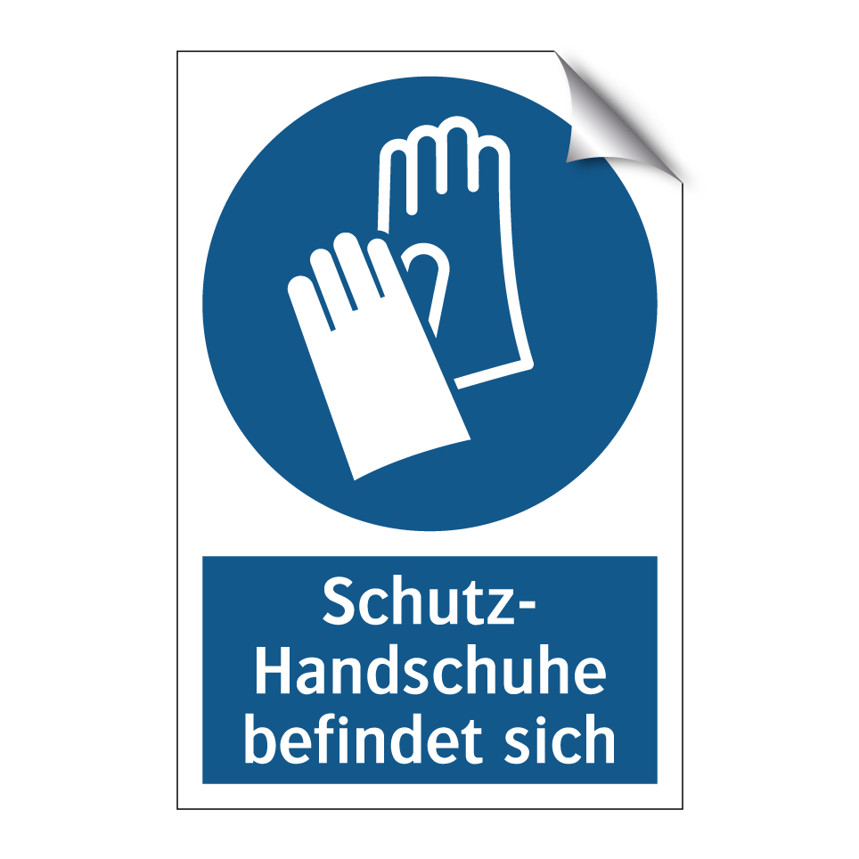 Gebotsschild mit dem Text Schutz- Handschuhe befindet sich