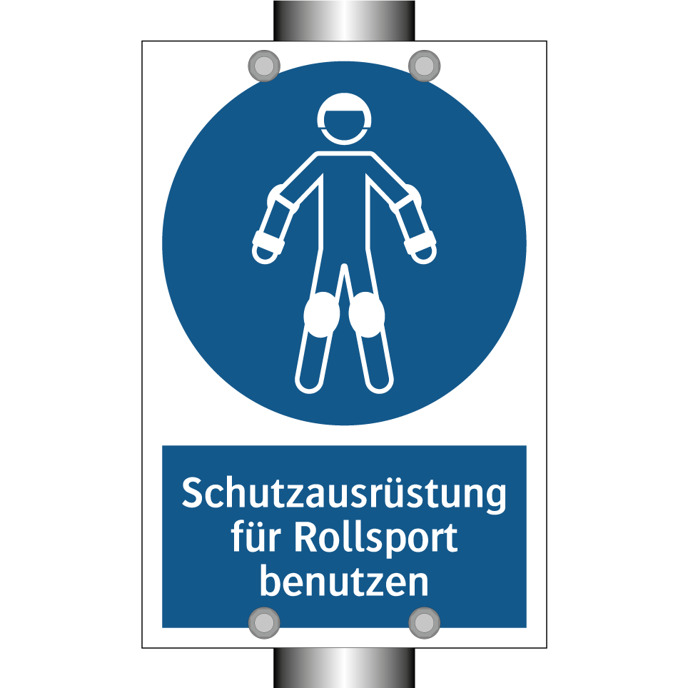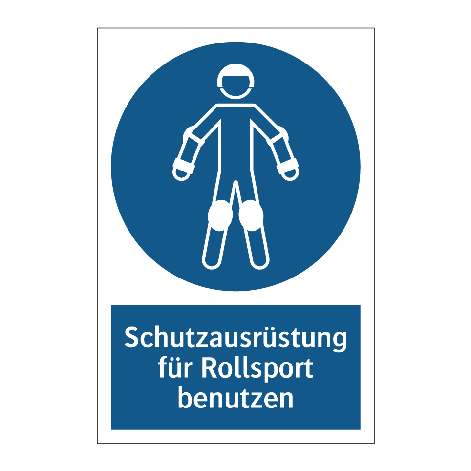 Gebotsschild mit dem Text Schutzausrüstung für Rollsport benutzen