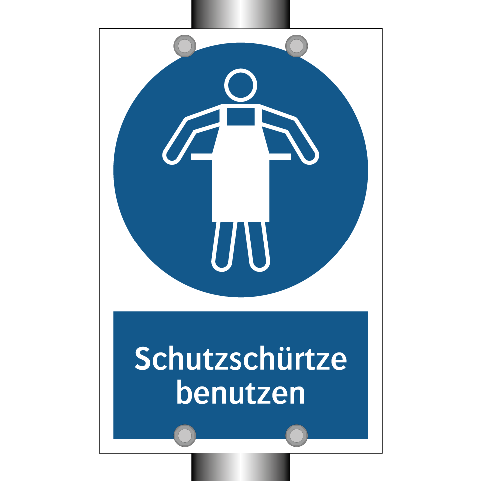 Gebotsschild mit dem Text Schutzschürtze benutzen