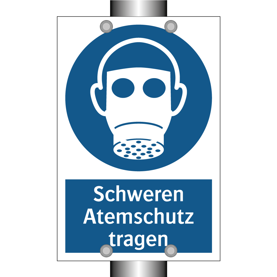 Gebotsschild mit dem Text Schweren Atemschutz tragen