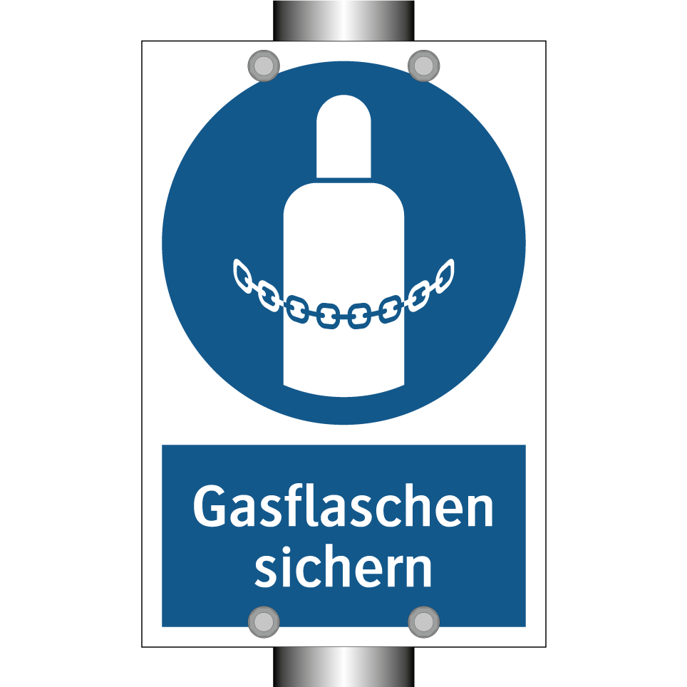 Gebotsschild mit dem Text Gasflaschen sichern