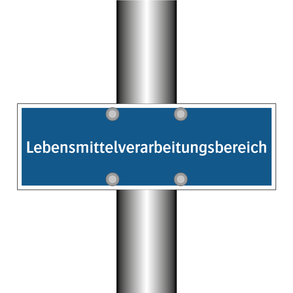 Gebotsschild mit dem Text Lebensmittelverarbeitungsbereich