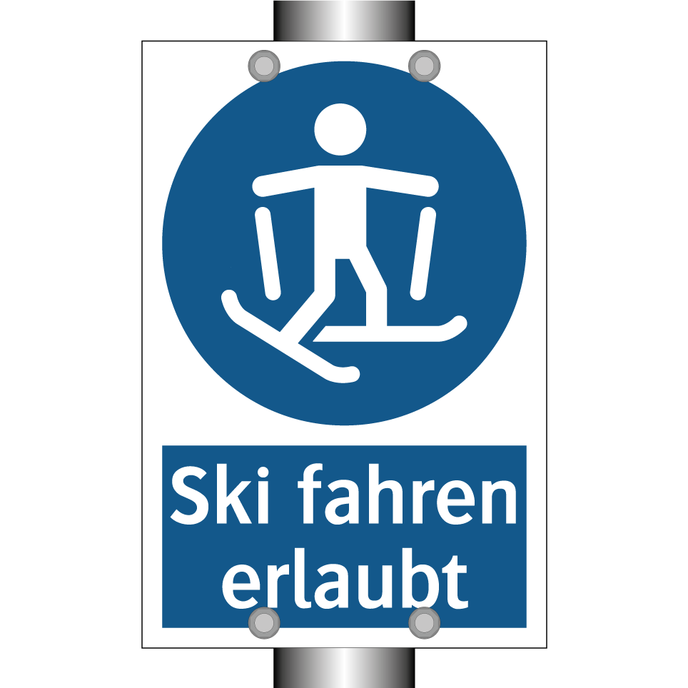 Gebotsschild mit dem Text Ski fahren erlaubt