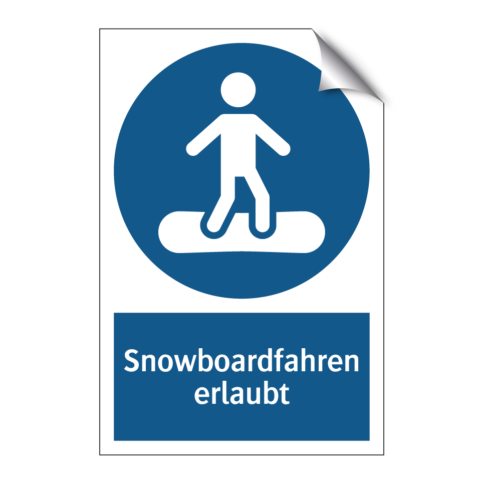 Gebotsschild mit dem Text Snowboardfahren erlaubt