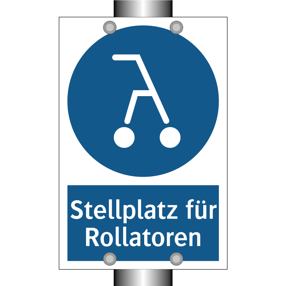 Gebotsschild mit dem Text Stellplatz für Rollatoren
