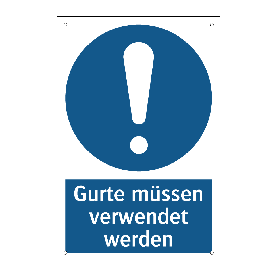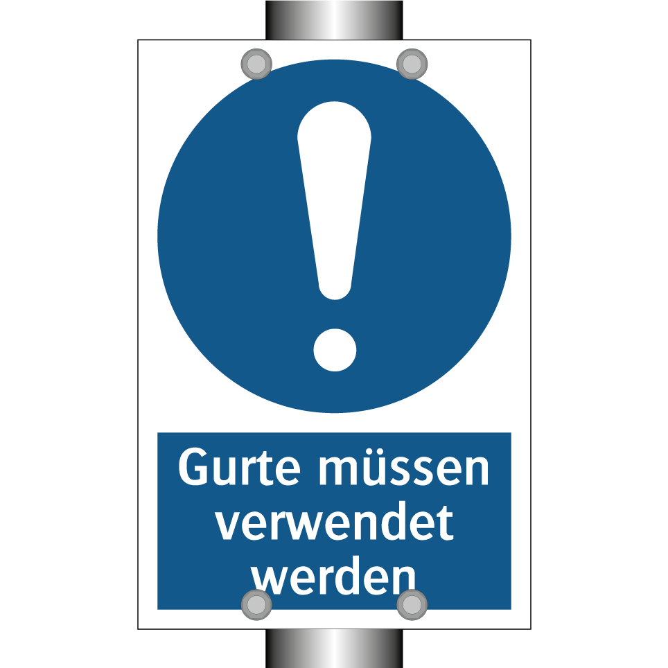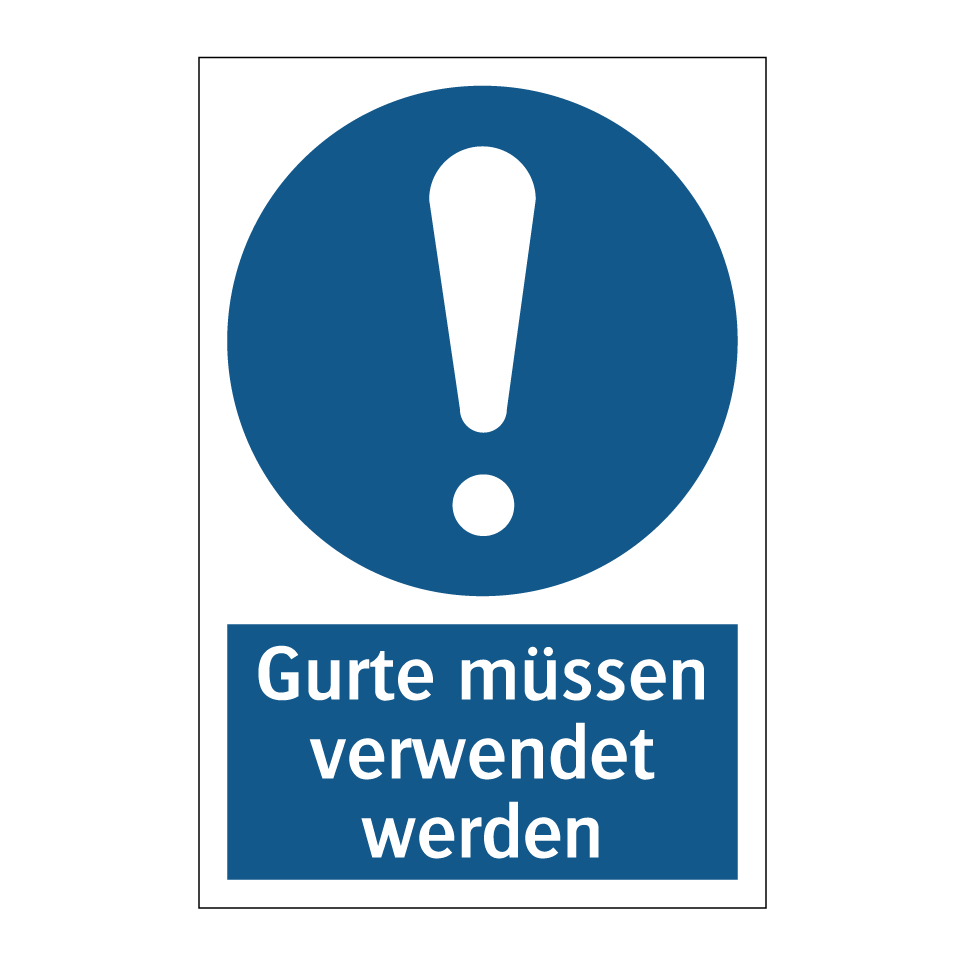 Gebotsschild mit dem Text Gurte müssen verwendet werden