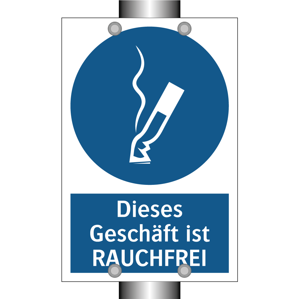 Gebotsschild mit dem Text Dieses Geschäft ist RAUCHFREI